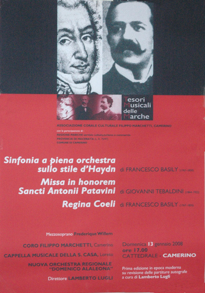 del Conservatorio “San Pietro a Majella” di Napoli: Sinfonia a piena orchestra sullo stile d’Haydn e Regina Coeli. Basily, loretano, fu un ottimo musicista; direttore delle