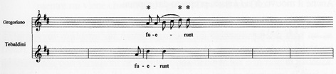 e quello imitativo di ita desiderat, in modo particolare la parte dei tenori, formata da una triade ascendente, sono derivati dalle rispettive melodie gregoriane.